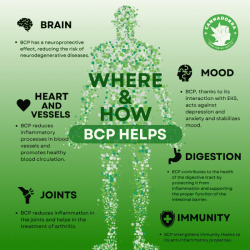 Thanks to these properties, BCP drops are ideal for those who want to support calm, balance, and immunity naturally—whether they avoid CBD for health reasons, work-related restrictions, driving, or simply prefer purely herbal products without THC or CBD.