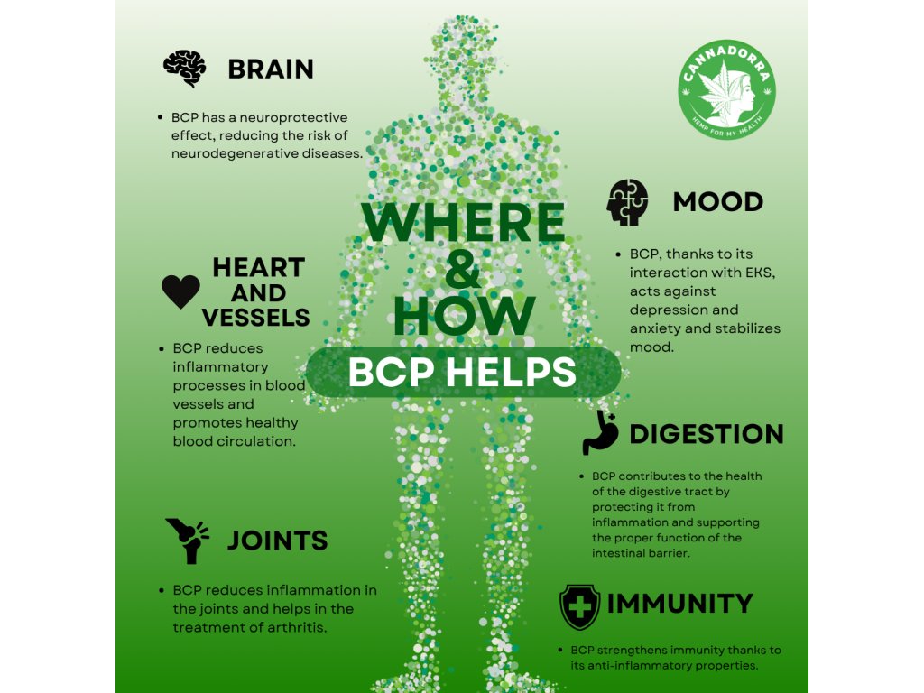 Research suggests BCP may protect the nervous system – for example, in ischemic brain injury, where it can reduce infarct volume and inflammatory response.