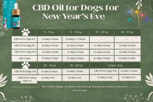 The biggest mistake that owners make? They start the day before New Year's Eve. CBD is not a sleeping pill. It needs time to get going in the body and the endocannabinoid system to harmonize. We recommend starting with the dosage ideally 2-3 weeks after New Year's Eve, ramping up to the recommended dose, and then increasing the dosage a few days before the event.