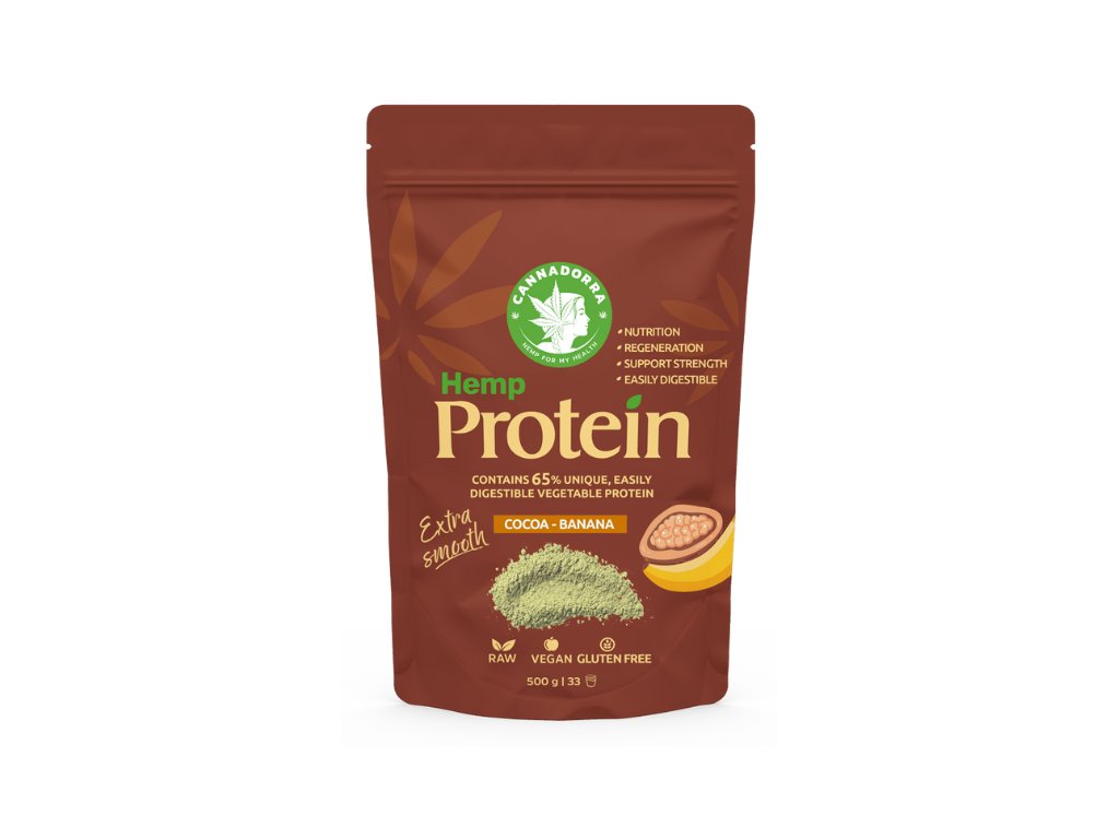 Hemp protein with cocoa and banana - now with 60% high-quality plant protein - 33 servings. It dissolves easily in water and plant-based milk, contains all 23 amino acids and is a natural source of vitamins, minerals and fiber. Gluten and lactose free, suitable for athletes and vegans.