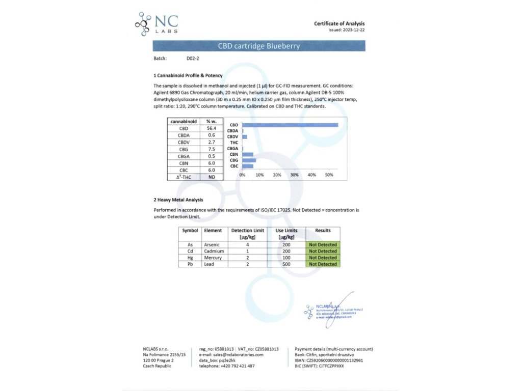 Le cartucce non contengono nicotina. Ogni cartuccia contiene il 55% di CBD e altri cannabinoidi.