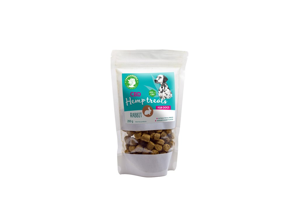 Prodotto veterinario - Bocconcini al CBD per cani con un delizioso sapore di coniglio. Ogni confezione contiene 400 mg di CBD. Composizione naturale con ottimo gusto e digeribilità.