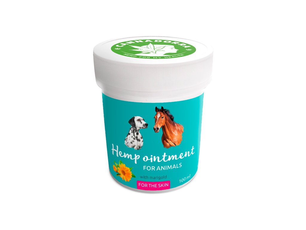 Unguento per la pelle con canapa e calendula, formulato appositamente per animali, aiuta ad affrontare i problemi della pelle e favorisce la guarigione naturale. Prodotto cosmetico approvato per animali, privo di prodotti petroliferi e olio di palma. 100ml.