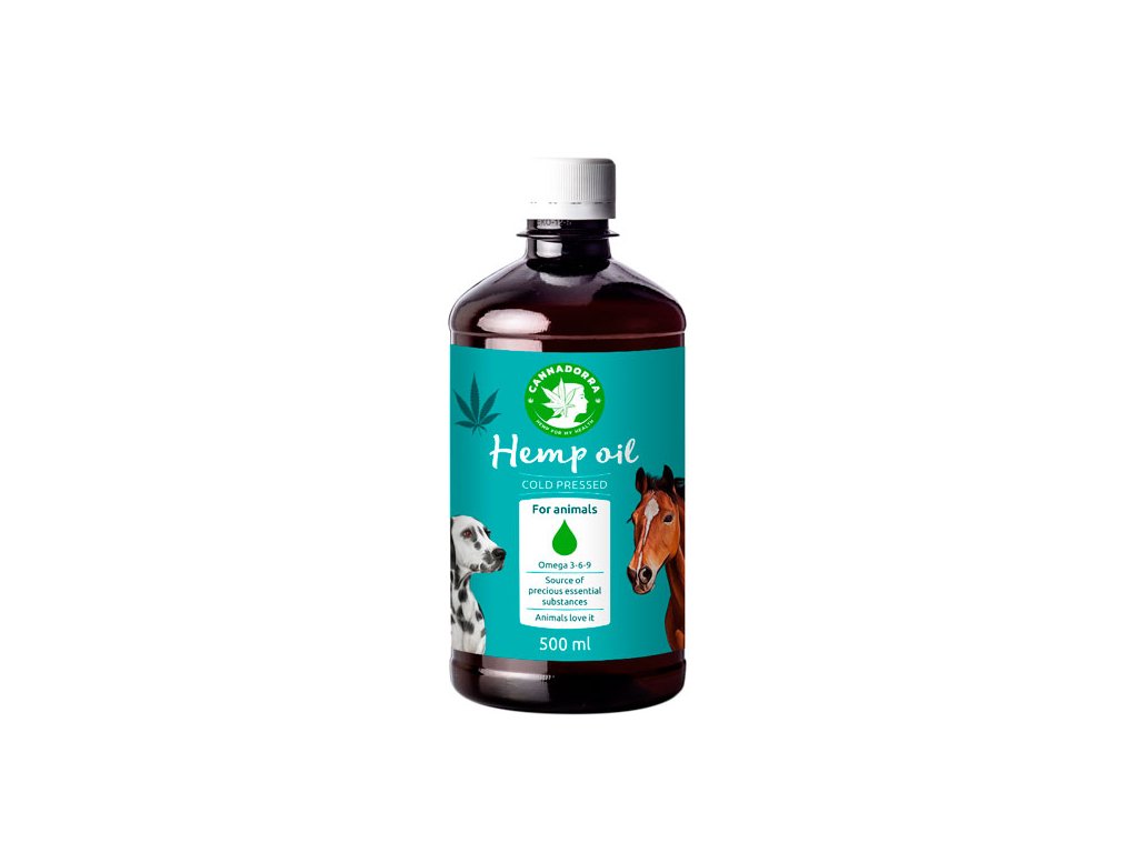 Dầu hạt gai dầu cho động vật, 500 ml. Chất lượng cao cấp với hương vị và mùi thơm hấp dẫn, lý tưởng để tăng cường sức khỏe và sức sống cho thú cưng của bạn.