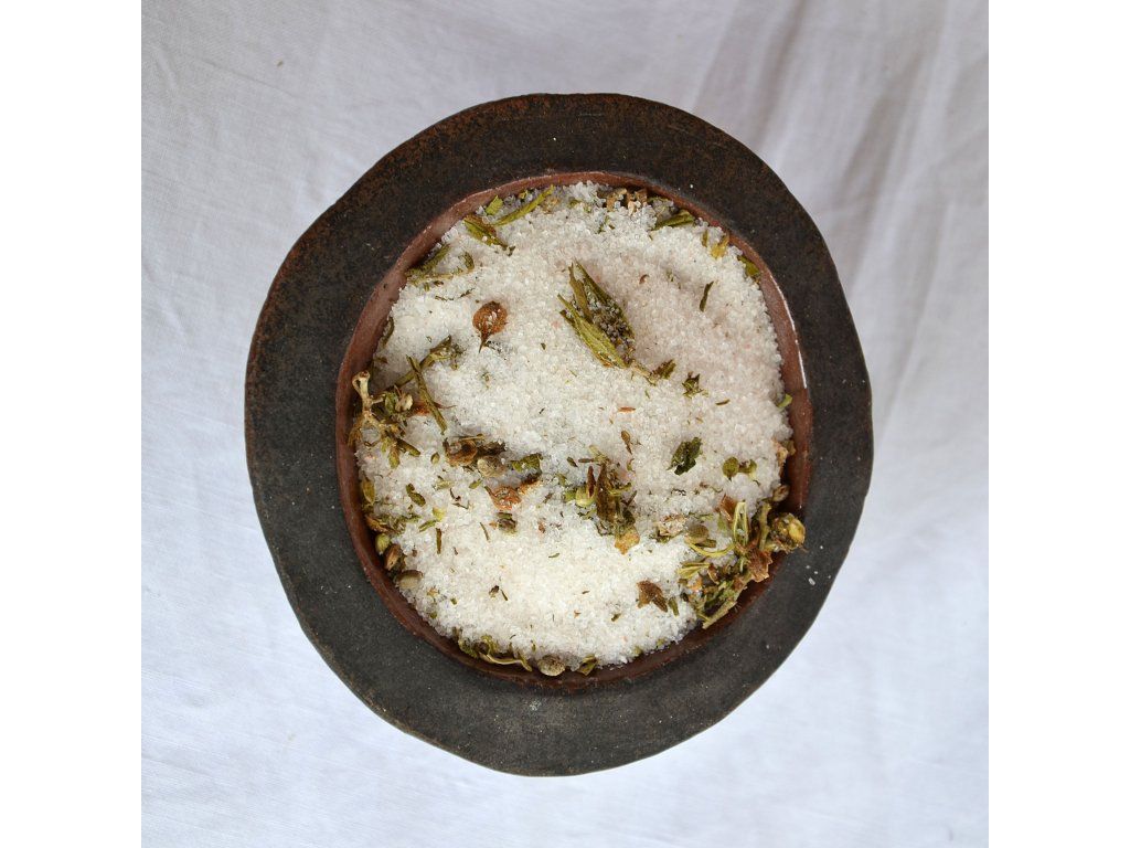 Muối Himalaya tẩm hoa và lá gai dầu, mang đến sự kết hợp độc đáo giữa khoáng chất và hương vị.