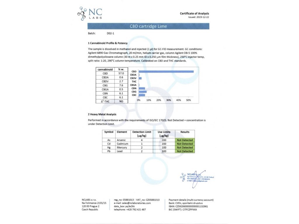 Các cartridge không chứa nicotine. Mỗi cartridge chứa 55% CBD và các cannabinoid khác.